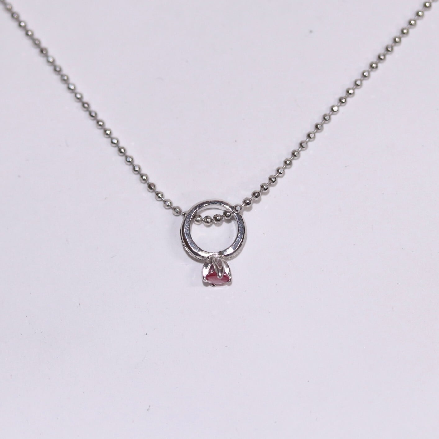 ベビーリングのネックレスです。ベビーリングとは元々赤ちゃんが誕生したことを祝うために贈られる小さい指輪の事ですが、ファッションネックレスとしてもお使いいただけます。お好きな誕生石を選べるのでプレゼントやお揃いで身につけるのもおすすめです。