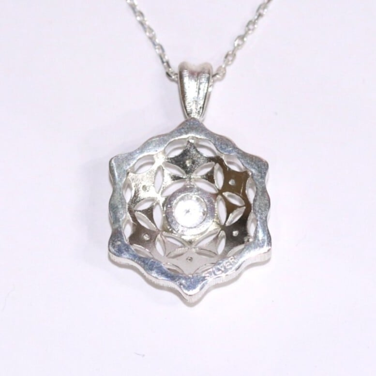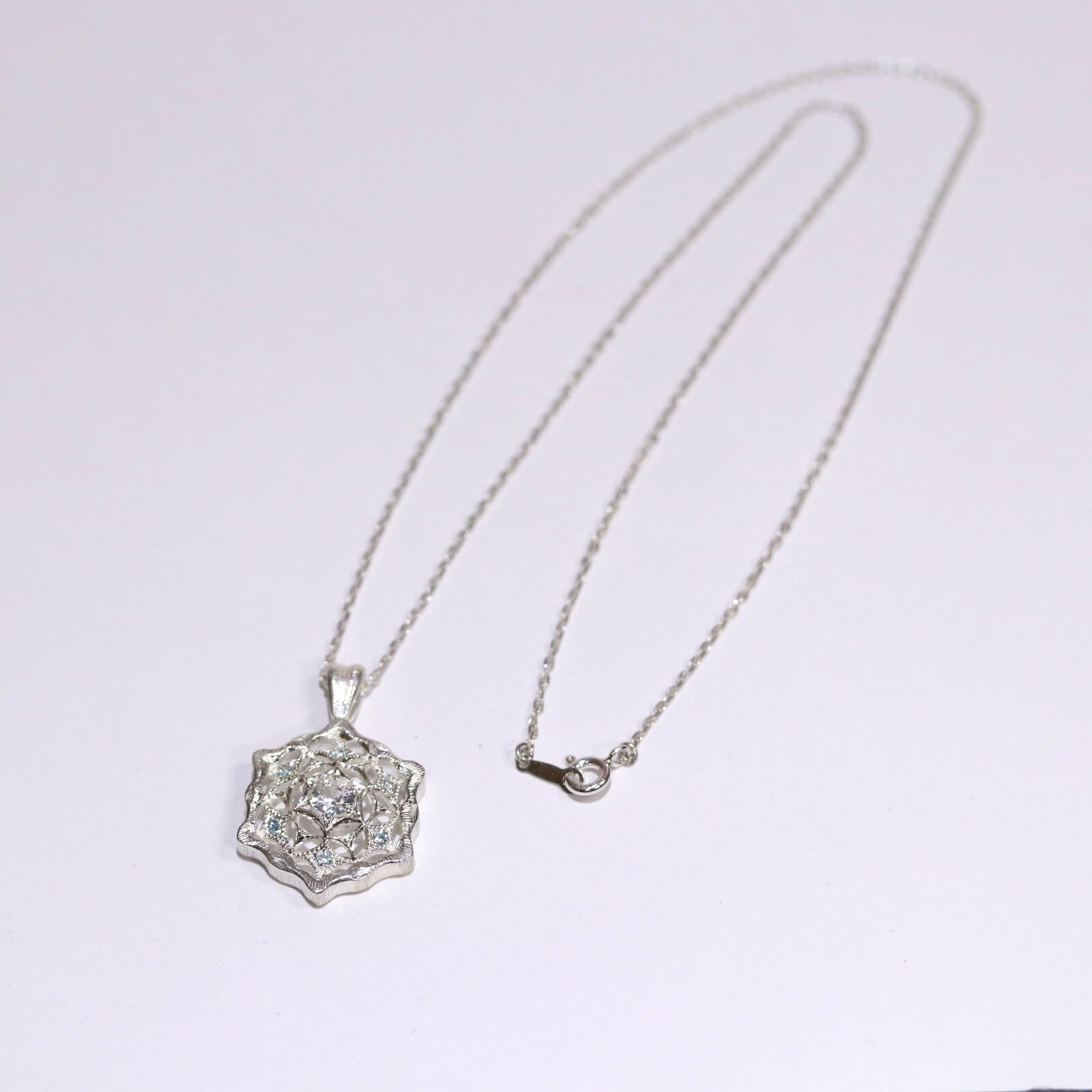 洋彫りヘキサゴンペンダント ホワイトジルコン