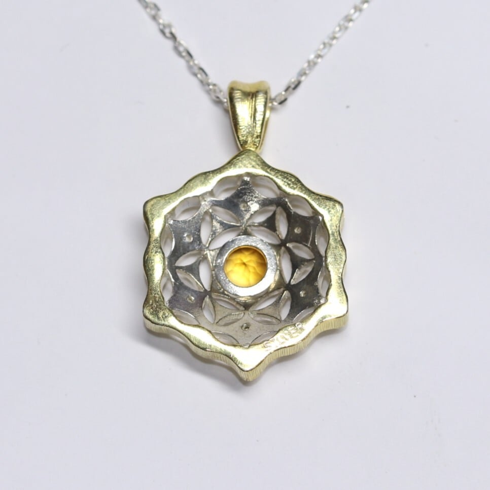 洋彫りヘキサゴンペンダント シトリン