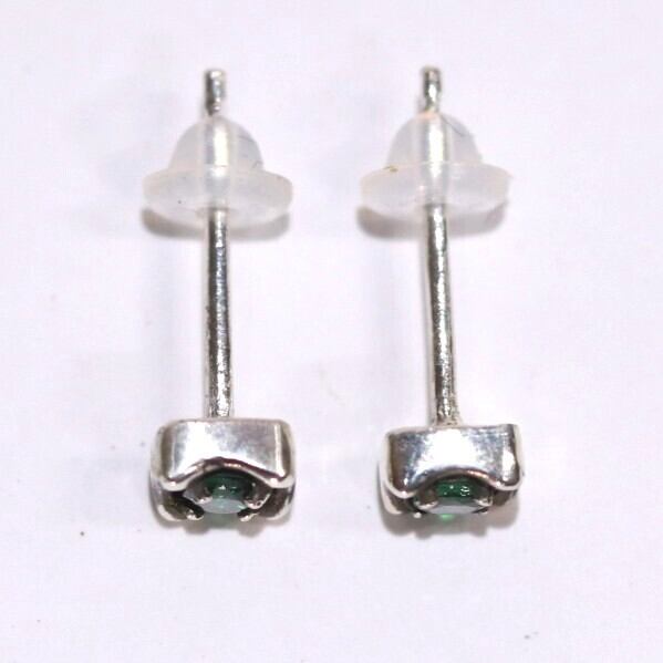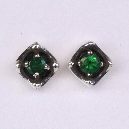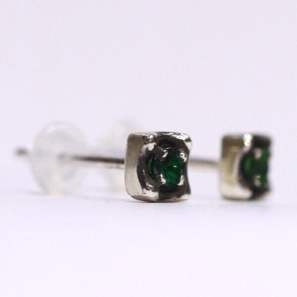 四角いフレームの中央にグリーンガーネットを留めてあります。