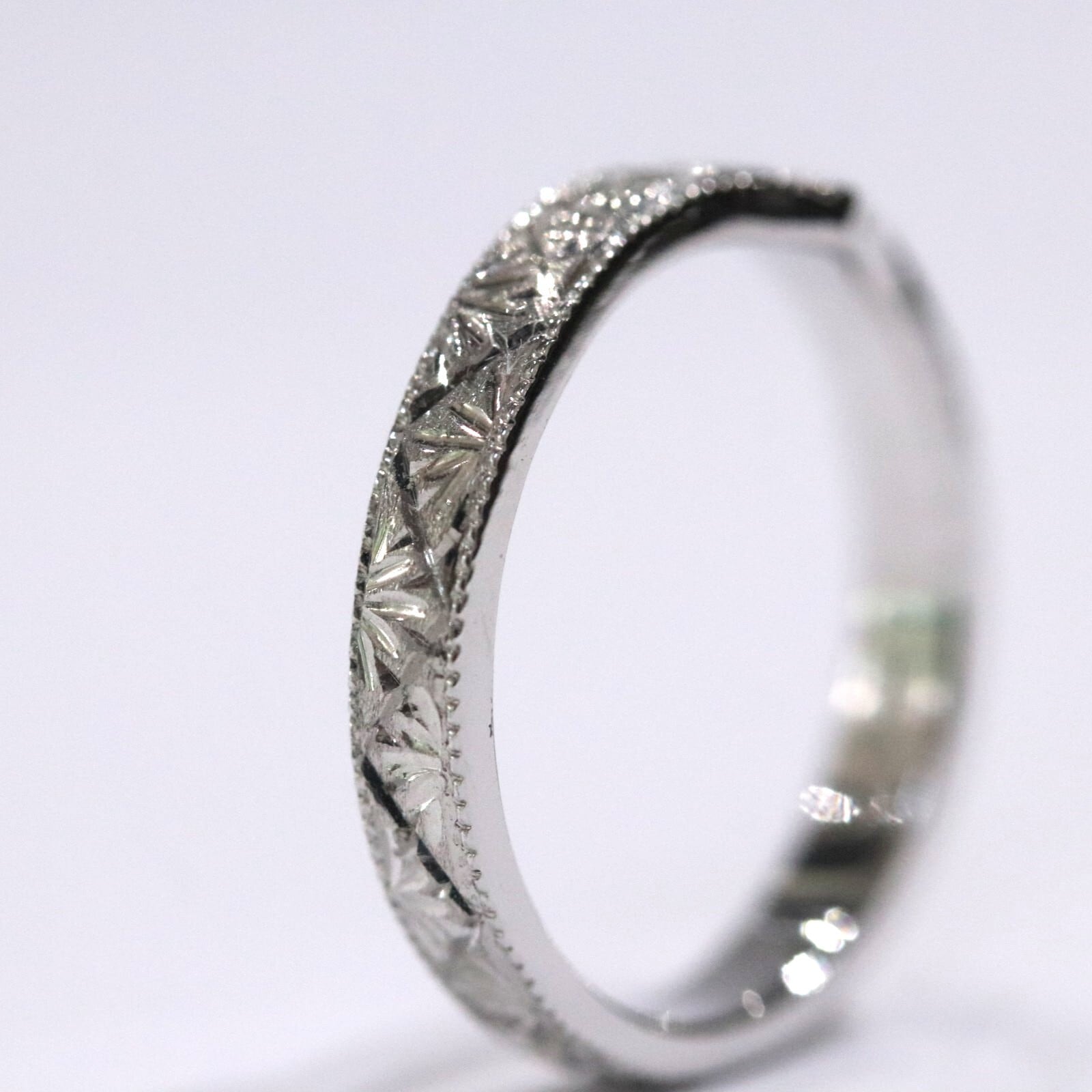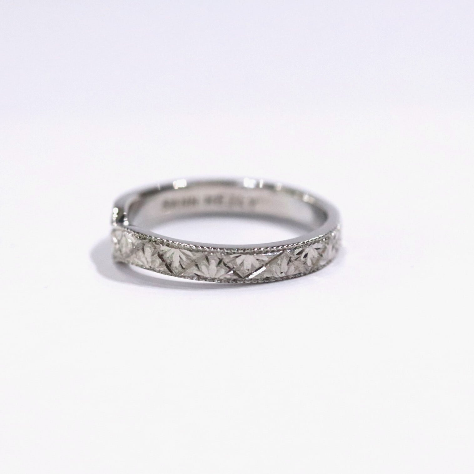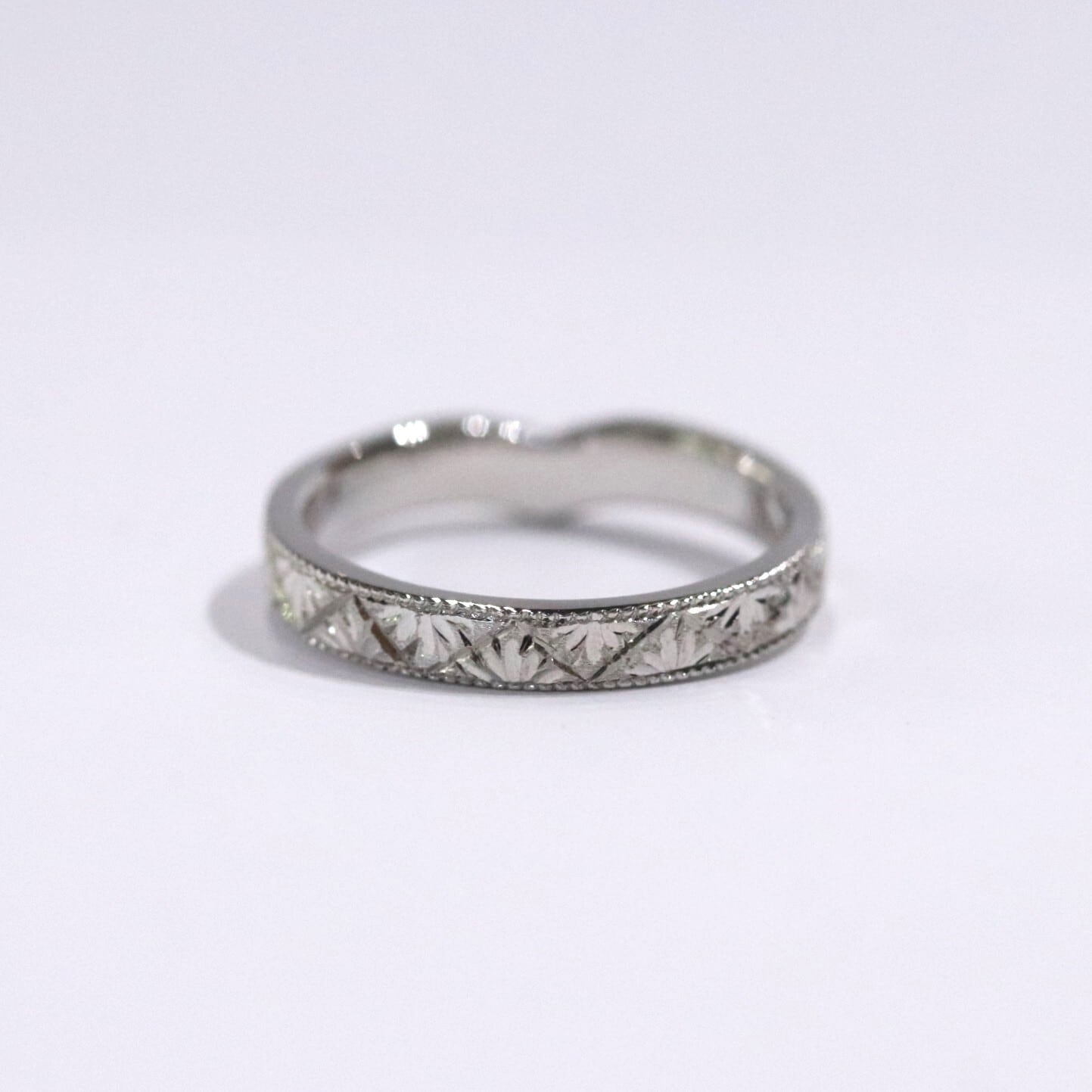 Vラインのリングに、イタリアの伝統技法フィレンツェ彫りをイメージしたリングになります。