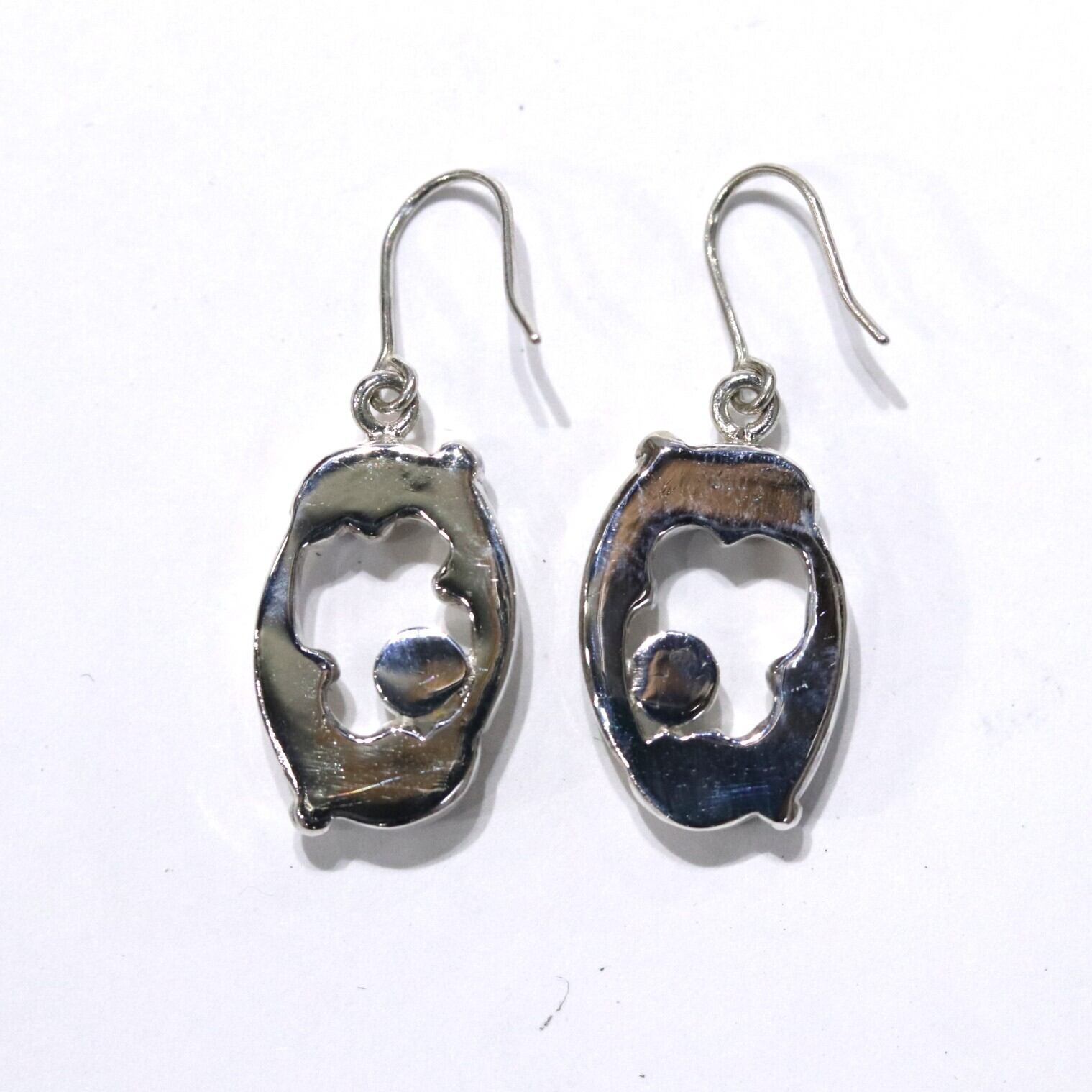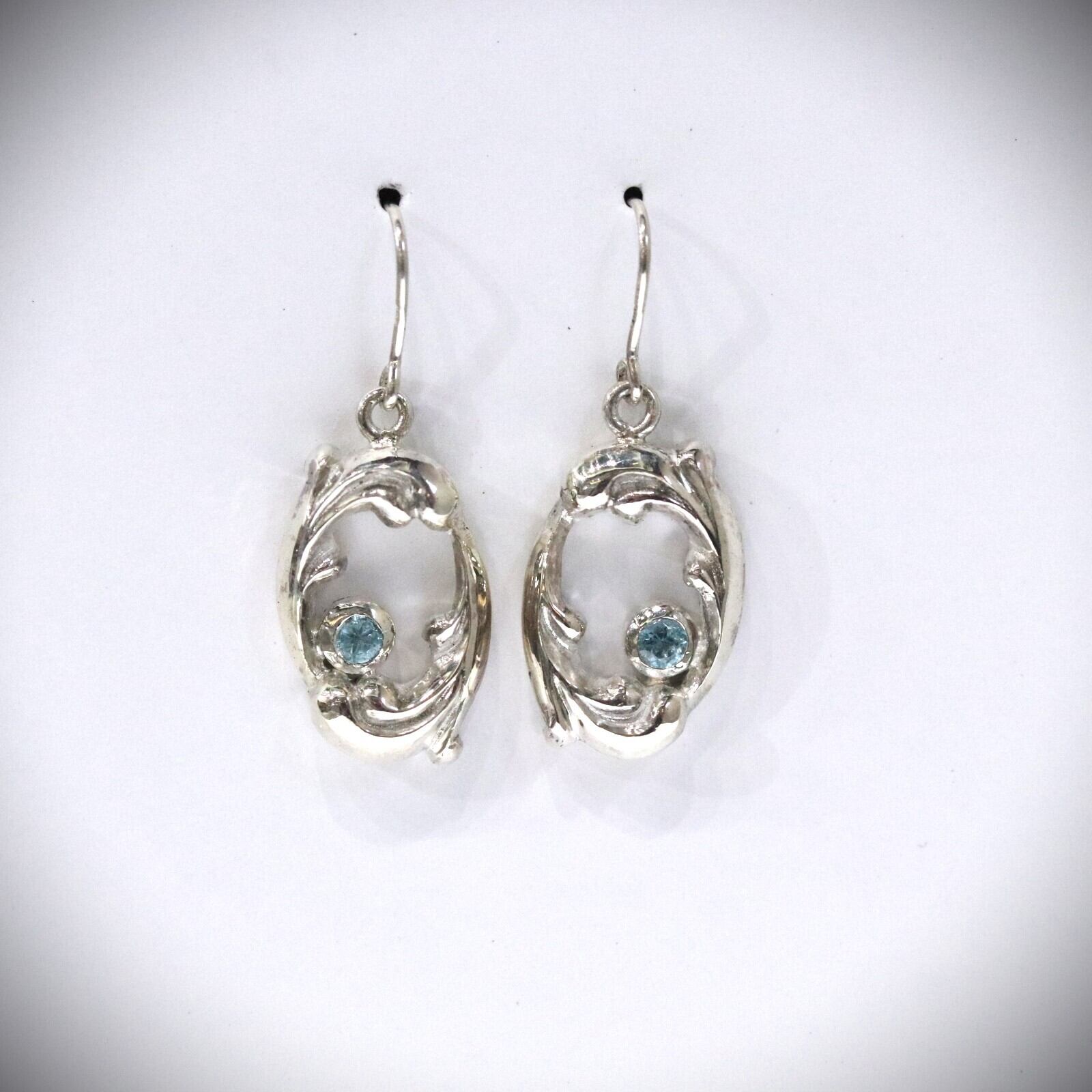 唐草模様をモチーフにした楕円の地金にフクリン留めのアパタイトをさりげなく入れたピアスです。シンプルながらボリュームがしっかりとあるので存在感があります。
