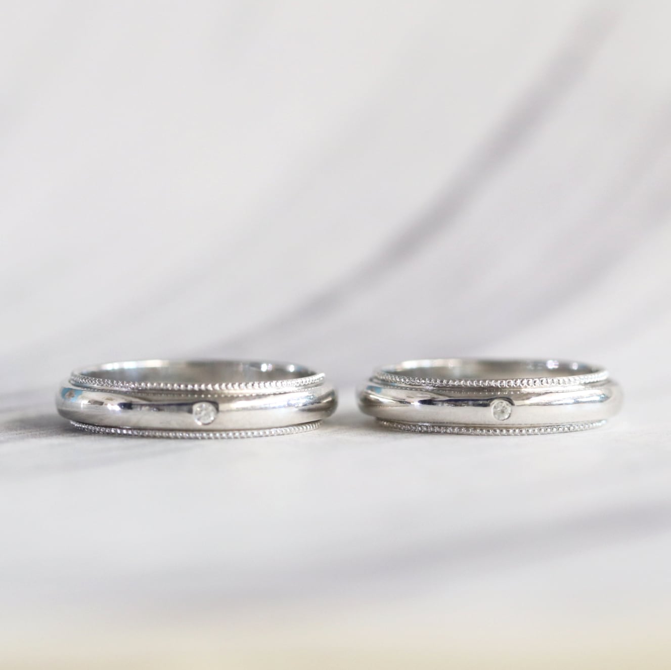 【結婚指輪】甲丸_ダブル1カラー_ミルグレイン_ベース4.0mm_Pt900_ダイヤモンド1P