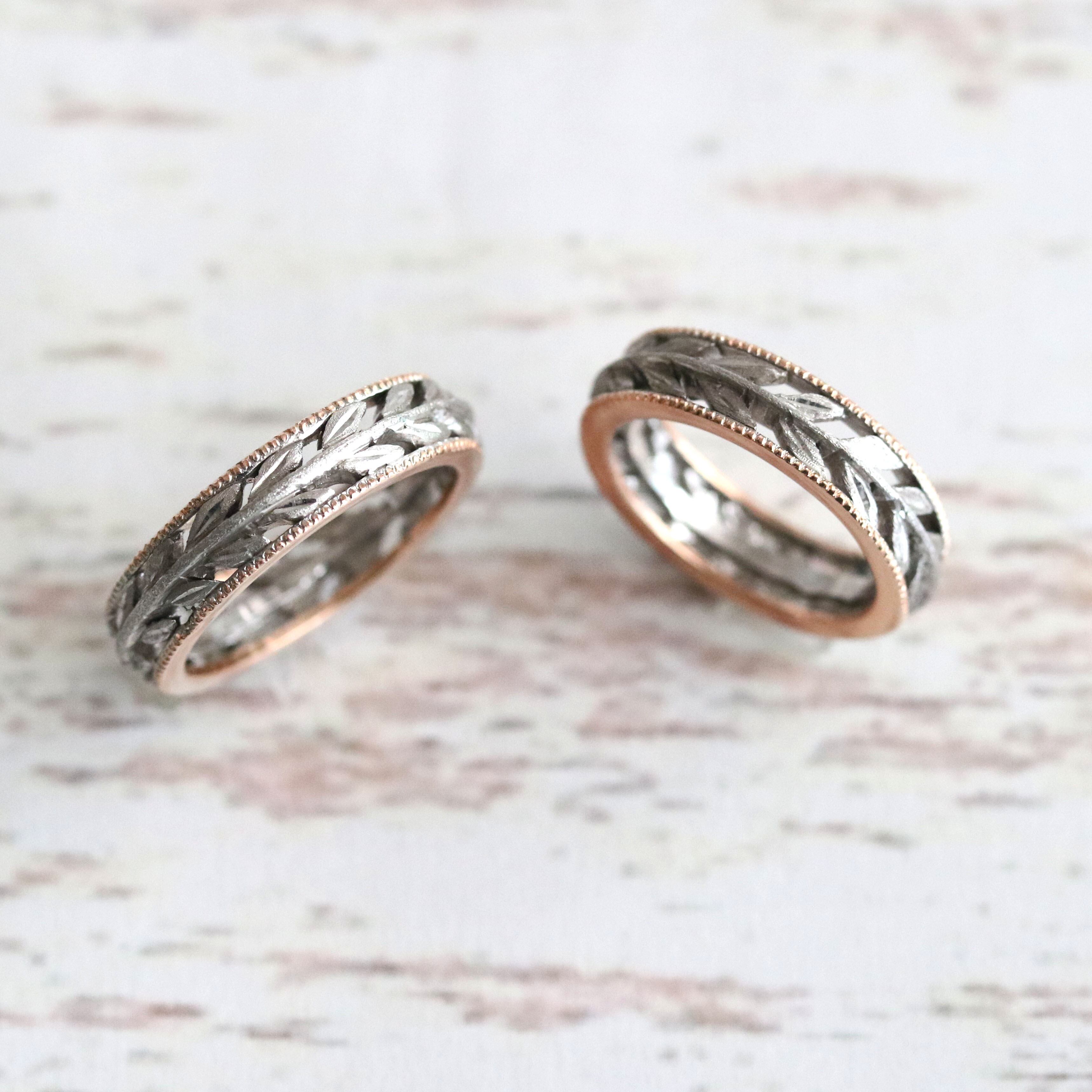 【結婚指輪】月桂樹の葉_2カラー_ミルグレインPt900×K18PG