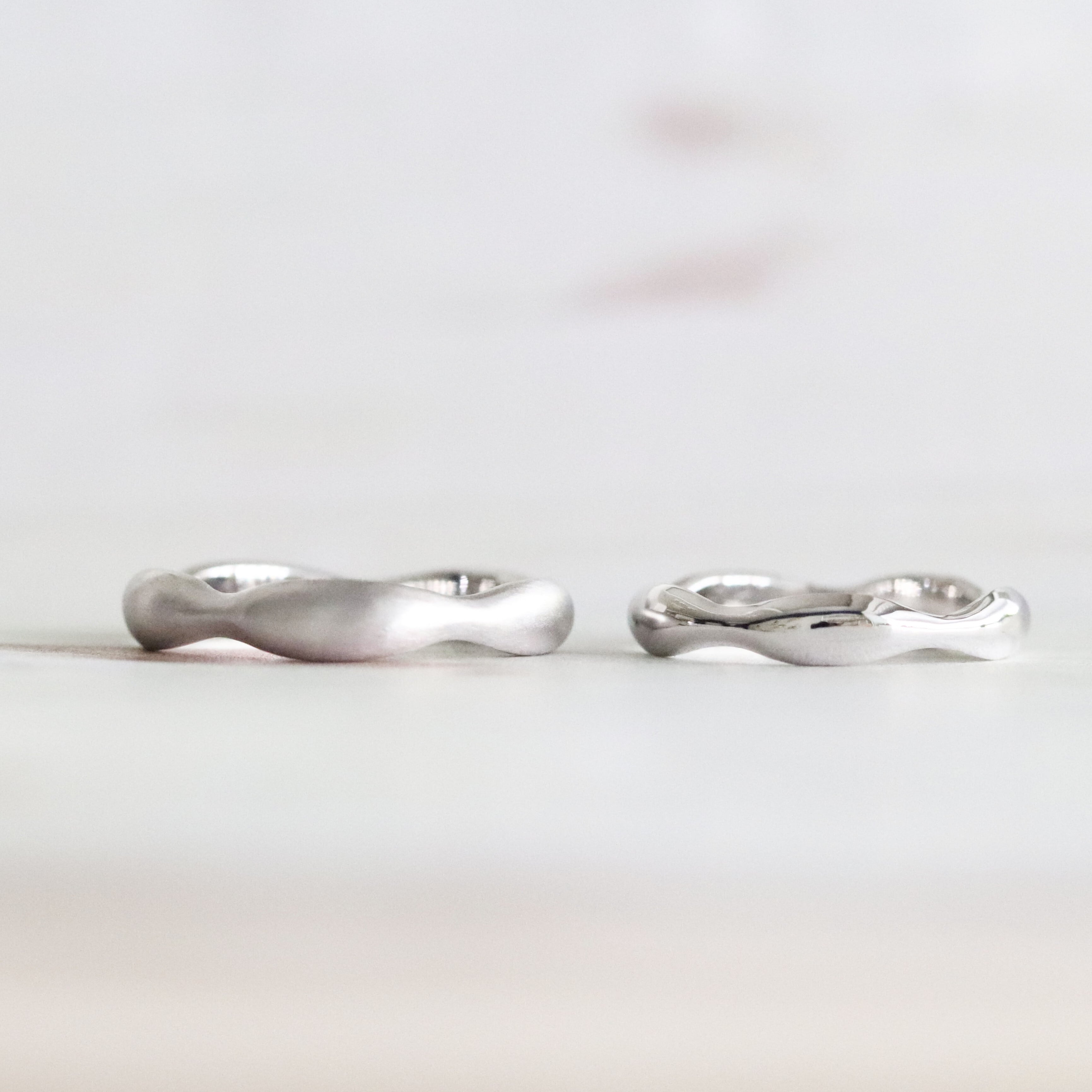 曲線でできた指輪ですので、やわらかな印象を感じると思います。
