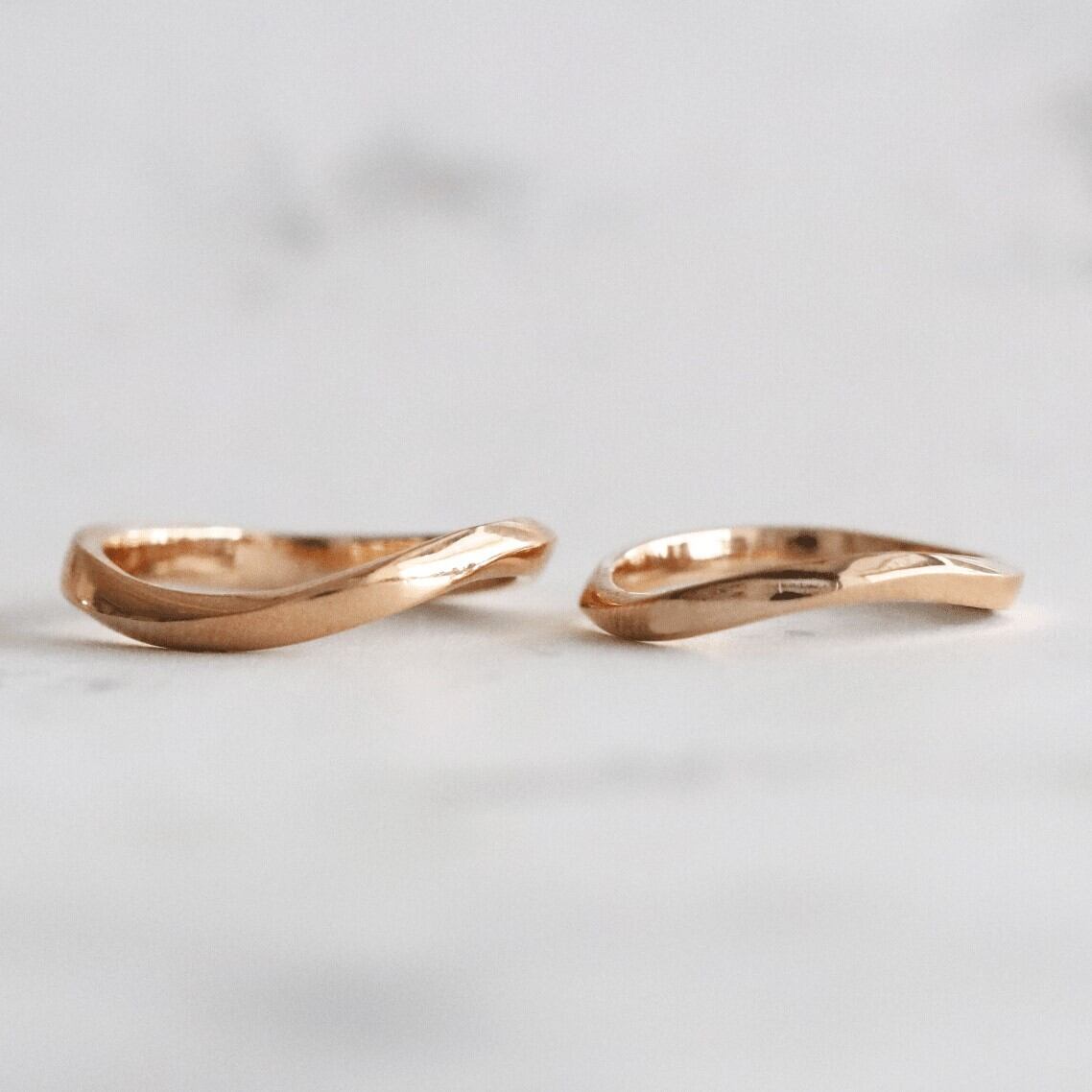 ウェーブラインのデザインになります。流れるような艶が美しいのがウェーブラインの特徴になります。またひねりを加えたデザインになりますので、立体感のある仕上がりになりました。オシャレに身につけていただけると思います。