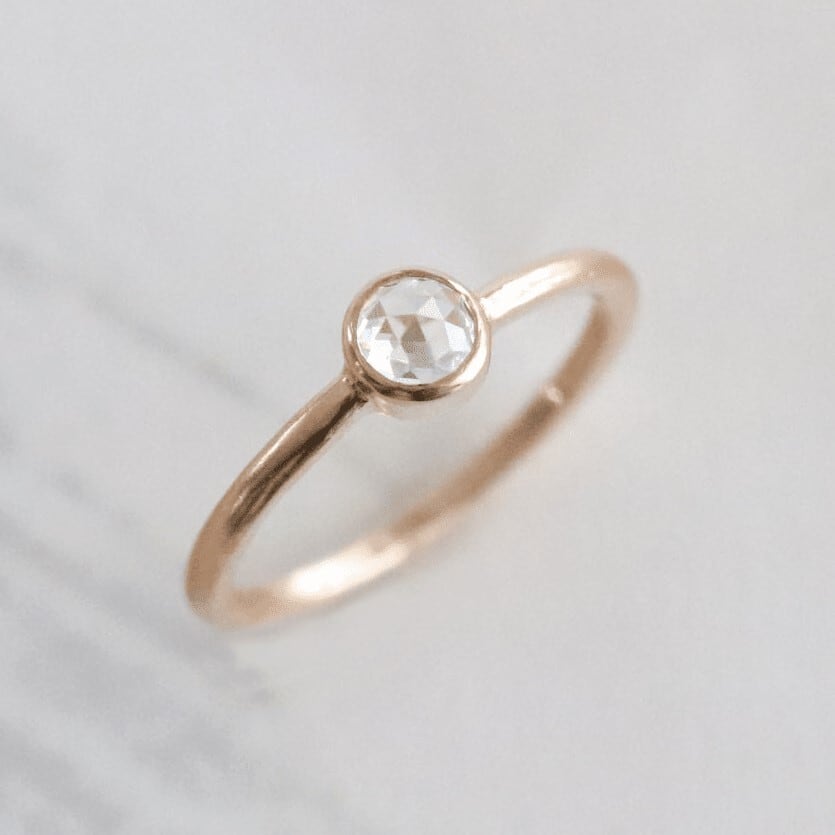 【婚約指輪】ローズカットダイヤモンド_ラウンドアーム_K18PG
