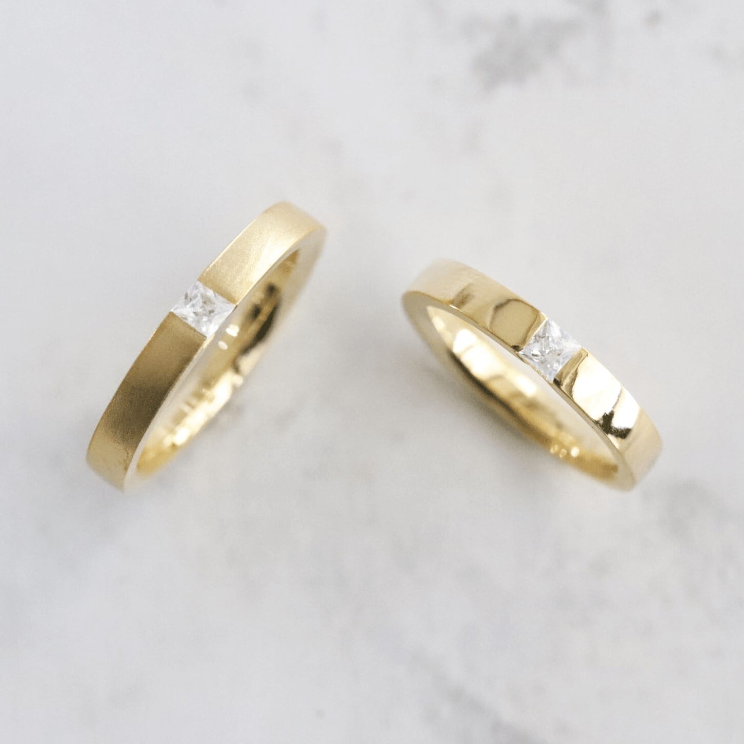 【結婚指輪】プリンセスカットダイヤモンド_K18YG