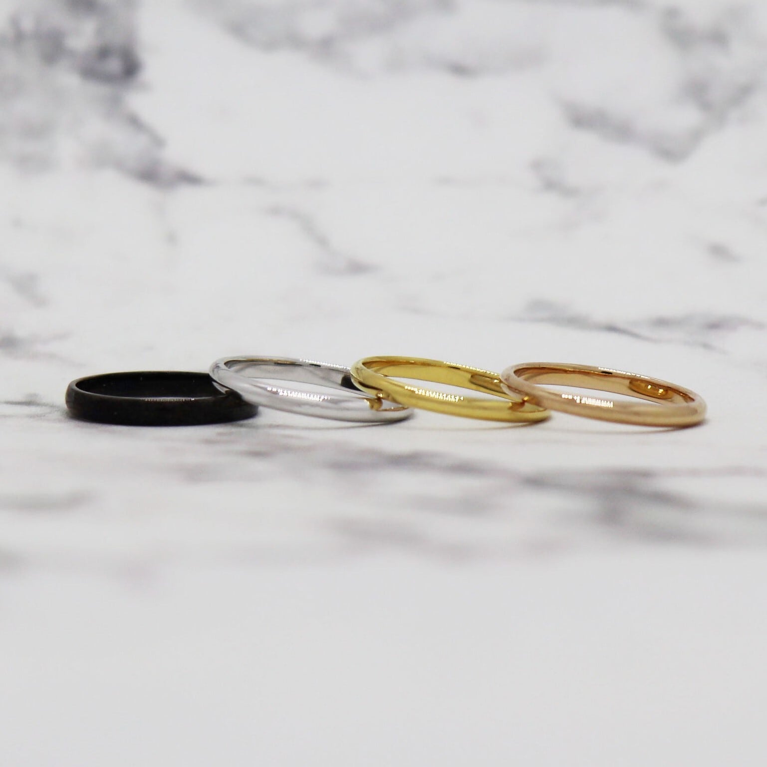 お色味は、ブラック、プラチナ、イエローゴールド、ピンクゴールドをご用意しております。
