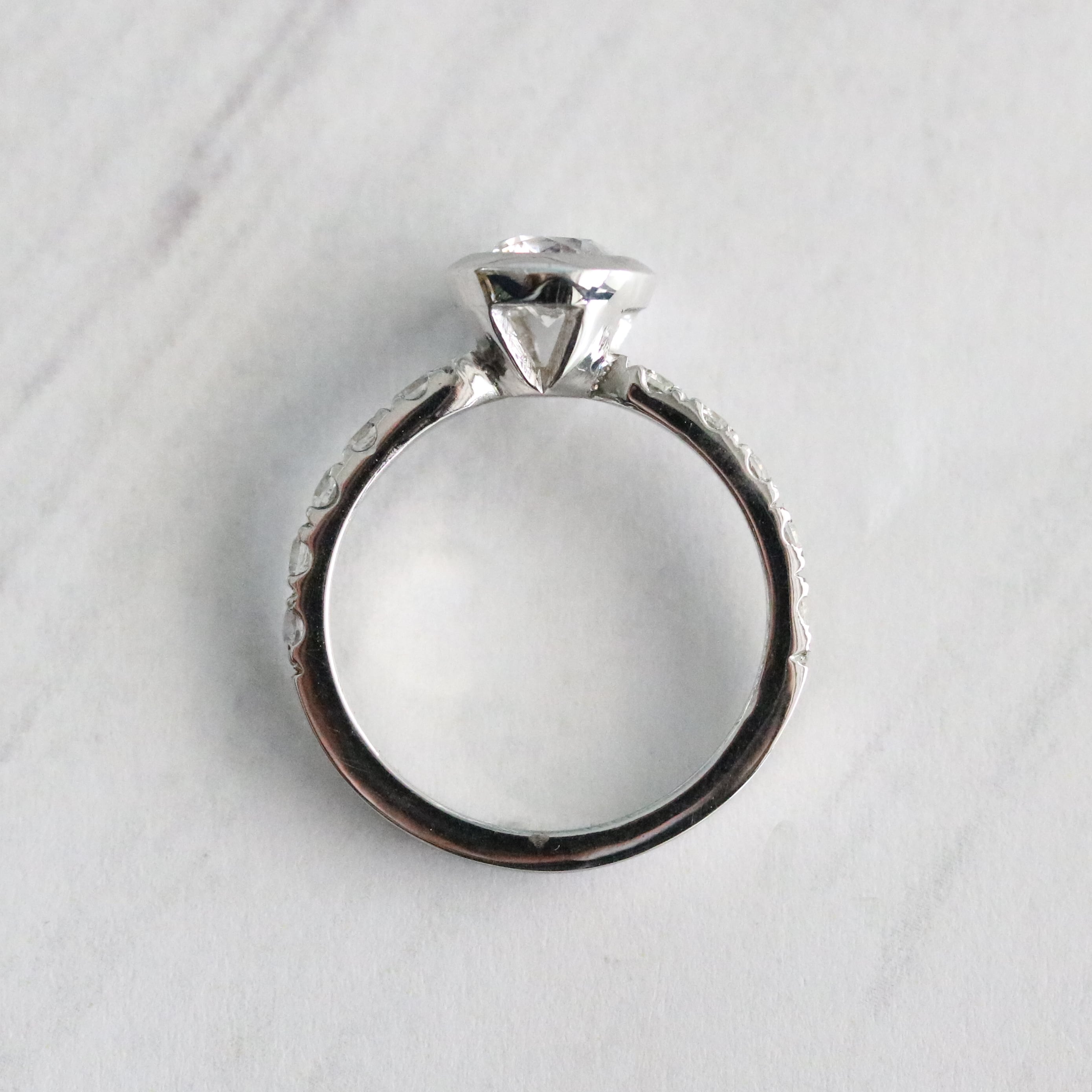 こちらは、指輪の内側に誕生石(1.5mmのラウンド)を石留する無料オプション加工です。
