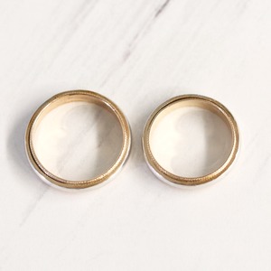 内側(ベース)の平の指輪と表側(アップ)の甲丸の指輪を重ねたダブルタイプの結婚指輪です。