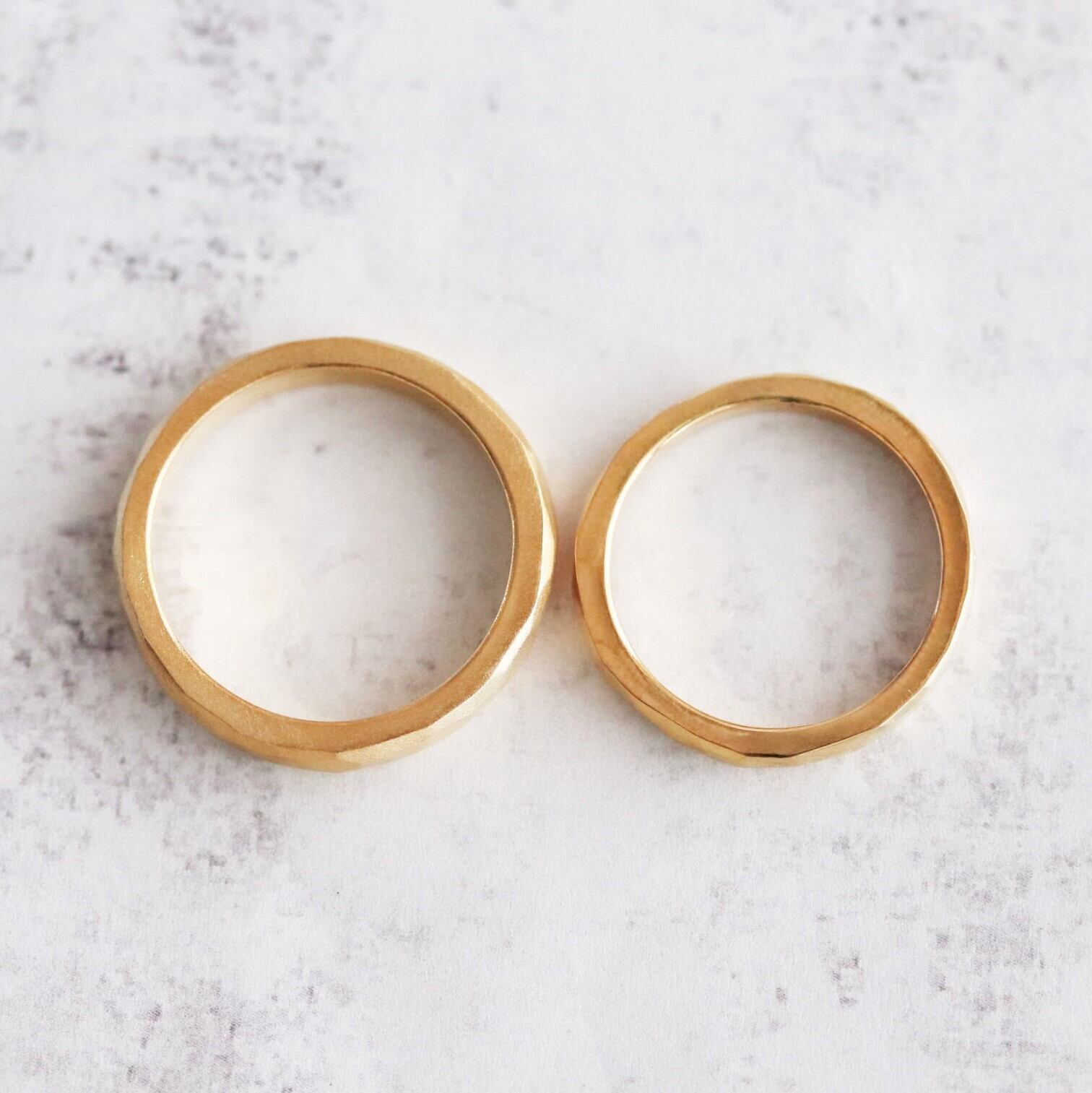 【結婚指輪】多角面_幅3.5&2.5mm _K18YG