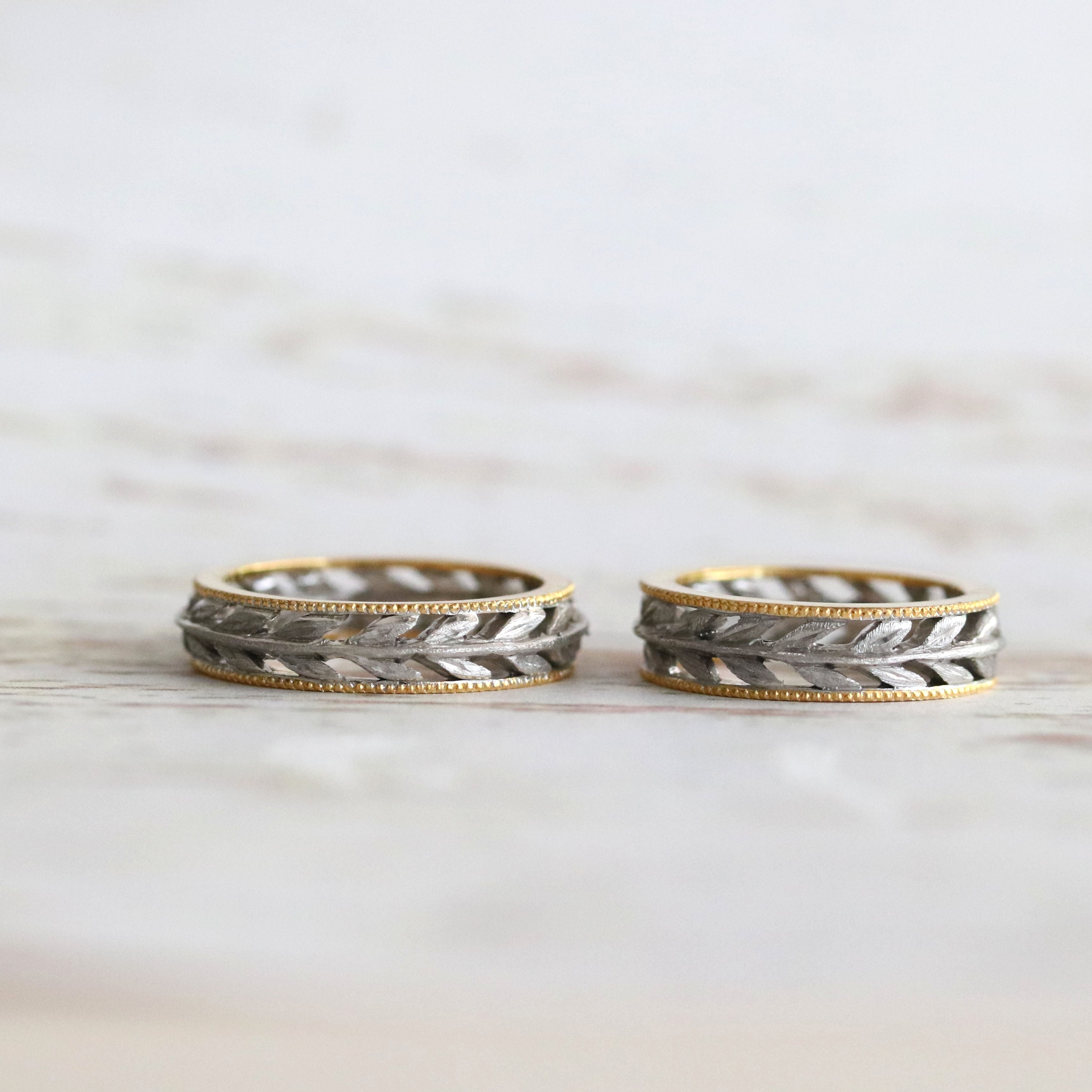 【結婚指輪】月桂樹の葉_2カラー_ミルグレイン_Pt900×K18YG