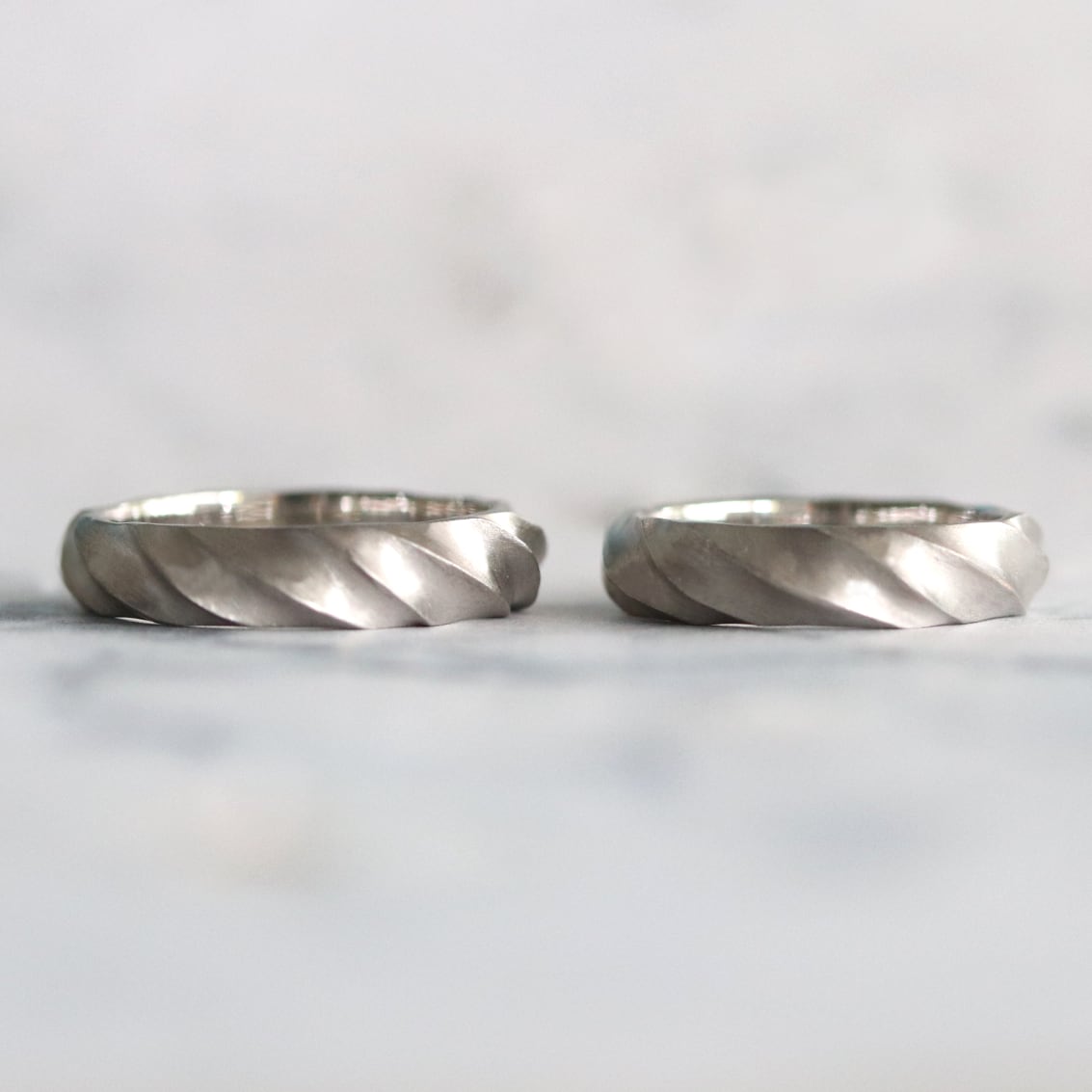 螺旋状の曲線を表現した結婚指輪です。