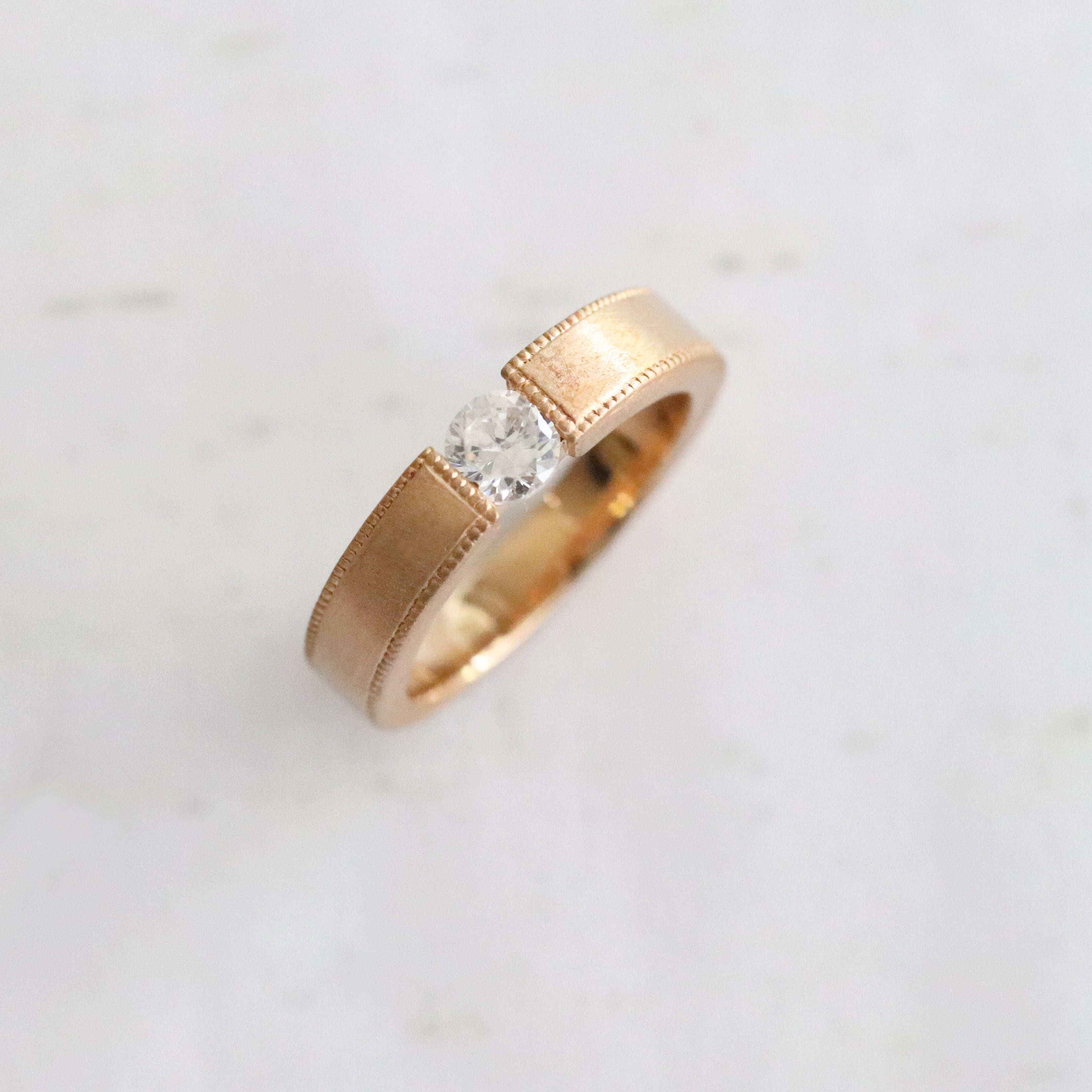 【婚約指輪】ミルグレイン枠_はさみ留め_K18PG